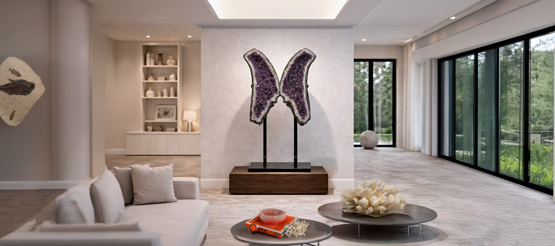 This impressive Amethyst Cluster Geode from Brazil is a high-quality natural formation of genuine amethyst gems. The cathedral decor displays dazzl...