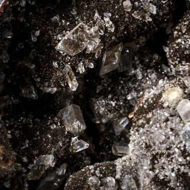 This 18.5 lb, top quality Septarian Druzy Geode Egg from Madagascar features an exposed area lined with dazzling druzy quartz crystals, as well as ...