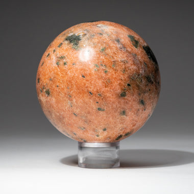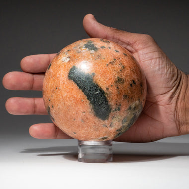 This top quality carnelian agate sphere from Madagascar features deep yellow-gold to red-orange hues and a smooth, glossy finish. Display it in any...