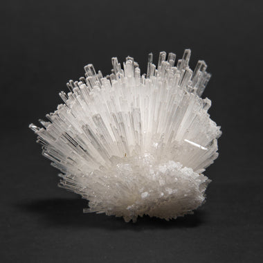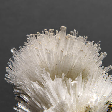 From Nasik District, Maharashtra, India Lustrous transparent-to-translucent colorless elongated scolecite crystals in a spray-shaped formation. The...
