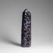 This solid Indigo Gabbro point, also known as Mystic Merlinite, is hand polished to a beautiful shine. Its composition of feldspar, quartz, and igneous rock create a unique pattern, making for its distinctive look.