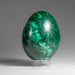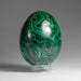 Crafted from top-quality malachite sourced from Zaire, this hand-polished egg boasts a distinct banded pattern and solid composition without any fill. Displayed on an acrylic stand, this stunning piece channels the energies of balance, abundance, manifestation, and intention. Known as the "stone of transformation," malachite is a potent metaphysical stone used for powerful energy cleansing.