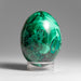 Crafted from top-quality malachite sourced from Zaire, this hand-polished egg boasts a distinct banded pattern and solid composition without any fill. Displayed on an acrylic stand, this stunning piece channels the energies of balance, abundance, manifestation, and intention. Known as the "stone of transformation," malachite is a potent metaphysical stone used for powerful energy cleansing.