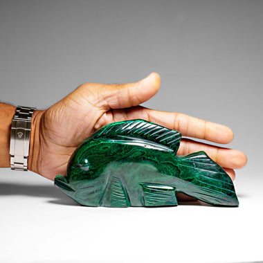 This beautifully detailed Fish carving is masterfully hand-carved from a single, solid piece of malachite that was sourced from Zaire. Polished to ...