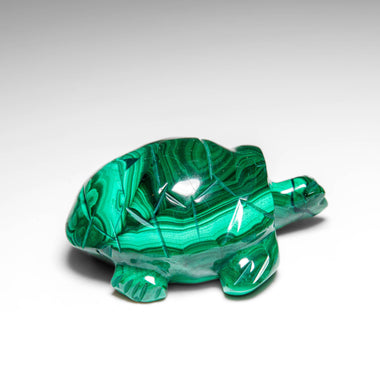 This beautifully detailed Turtle carving is masterfully hand-carved from a single, solid piece of malachite that was sourced from Zaire. Polished t...