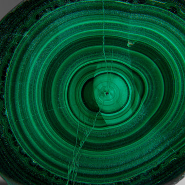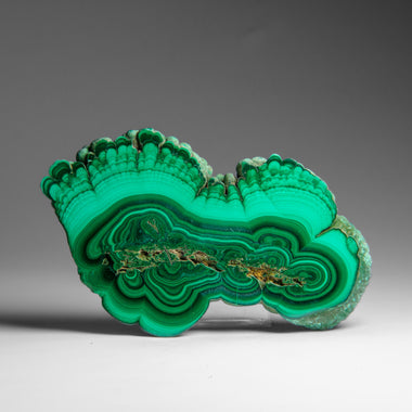 A fine and gorgeous Malachite Stalactite slice from Congo with rich, velvety bands of light and dark green and a magical chatoyance that morphs and...