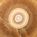 AAA quality, rare find translucent perfect bullseye yellow Aragonite stalactite slice. Polished on front and rear sides.