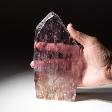 Large single crystal of transparent, pink spodumene Kunzite with with steep termination on the top, and complex termination on the bottom. Kunzite...