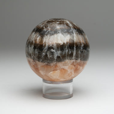 A beautifully polished Mexican onyx Sphere. It has an amazing pattern with vibrant hues of pink and white. Well defined banding all around. In cry...
