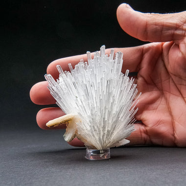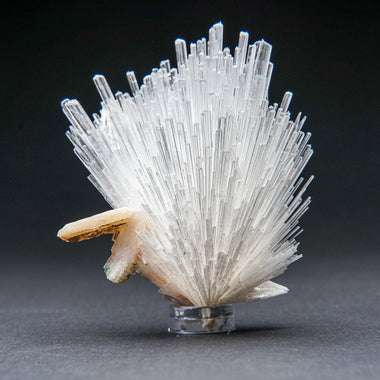 From Nasik District, Maharashtra, India Lustrous cluster of intersecting acicular sprays of scolectite crystals with Stilbite matrix. The scolecite...