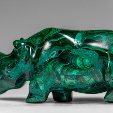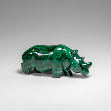 This beautifully detailed Rhino carving is masterfully hand-carved from a single, solid piece of malachite that was sourced from Zaire. Polished to...