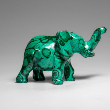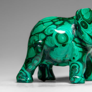 This beautifully detailed elephant carving is masterfully hand-carved from a single, solid piece of malachite that was sourced from Zaire. Polished...