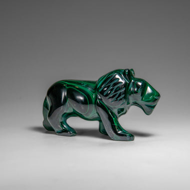 This beautifully detailed lion carving is masterfully hand-carved from a single, solid piece of malachite that was sourced from Zaire. Polished to ...