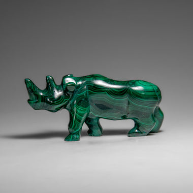 This beautifully detailed Rhino carving is masterfully hand-carved from a single, solid piece of malachite that was sourced from Zaire. Polished to...