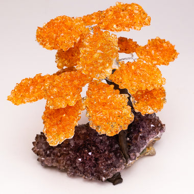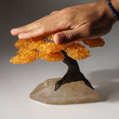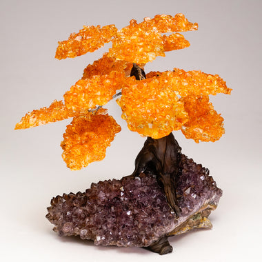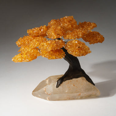 Genuine Citrine clustered gemstone tree with faux tree trunk set on Citrine crystal cluster lined matrix - handmade from Brazil. This tree makes fo...