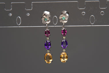 Beautiful high quality 10x15mm multi gemstones in sterling silver earrings adorned with a vibrant mix of amethyst, citrine, peridot, and topaz. The...