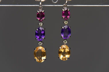 Crafted from genuine 925 sterling silver, these elegant stud drop earrings feature vibrant garnet, amethyst and citrine gemstones renowned for thei...