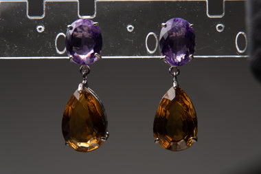 Crafted from genuine 925 sterling silver, these elegant .25x.5" stud drop earrings feature vibrant amethyst and citrine gemstones renowned for thei...