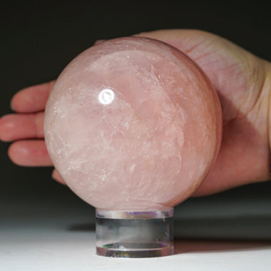 This genuine polished rose quartz egg from Madagascar is accompanied by an acrylic stand for showcasing. With its refined surface, it serves as a l...