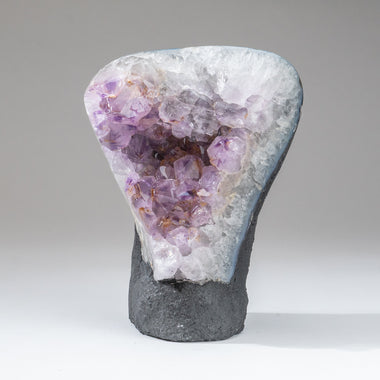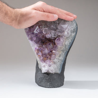 Thin plate of matrix embedded with gem transparent amethyst crystals. The amethyst crystals are fully terminated with rich deep purple amethyst cry...
