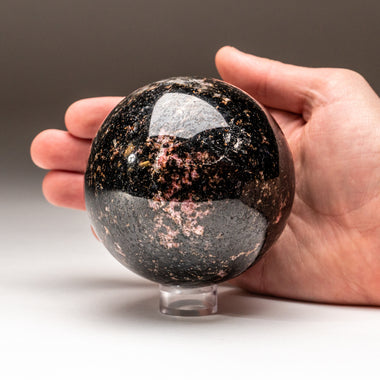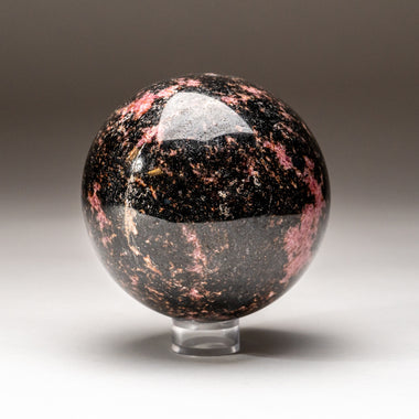 This top-quality hand-polished natural Imperial Rhodonite Sphere from Madagascar exhibits an exquisite pattern with vivid hues of pink and red. Whe...