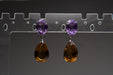 Crafted from genuine 925 sterling silver, these elegant .25x.5" stud drop earrings feature vibrant amethyst and citrine gemstones renowned for their deep hue and captivating sparkle. A stunning addition to any jewelry collection.