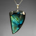 This striking labradorite silver pendant necklace features a bold, asymmetrical labradorite gemstone with vivid flashes of blue, teal, and golden green. The natural veining within the stone creates a dramatic, almost painterly effect, making each pendant truly one of a kind. A distinctive piece that celebrates the depth, color, and natural artistry of labradorite.