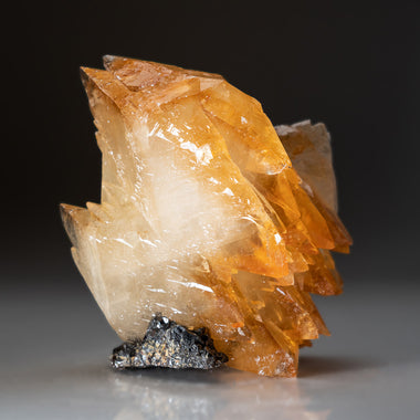 Large, museum-quality, lustrous transparent deep golden calcite with sphalerite crystal at the base of the crystal. Double terminated scalenohedral...
