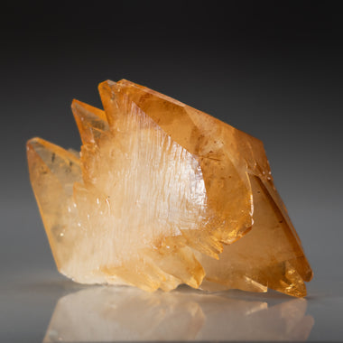 Lustrous transparent deep golden calcite crystal on matrix. Large double terminated scalenohedral twinned on the C-axis with well defined re-entran...