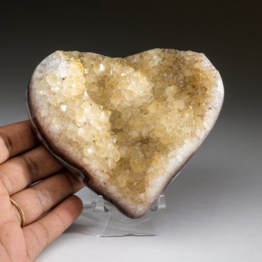 AAA quality Septarian Heart with an exposed area lined with scintillating druzy quartz crystal. The back side has been hand polished to a smooth hi...