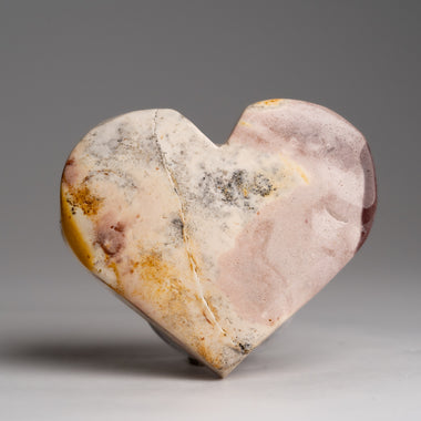 Expertly polished Mookaite heart from Brazil showcases stunning red, yellow, and pink swirls. This unique gift and display piece offers powerful he...