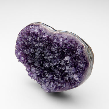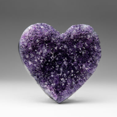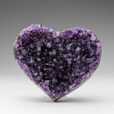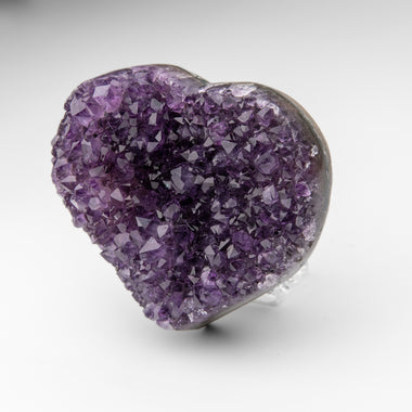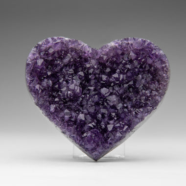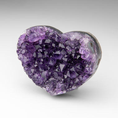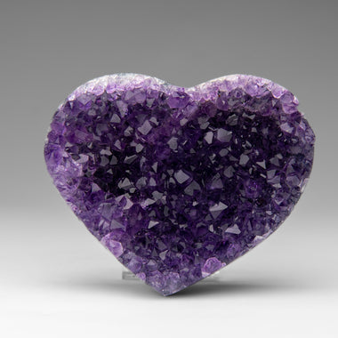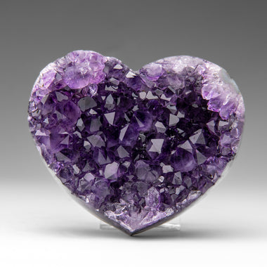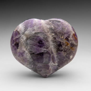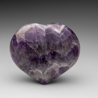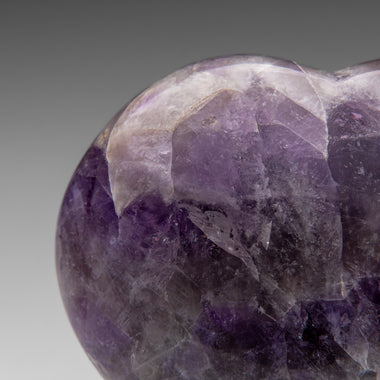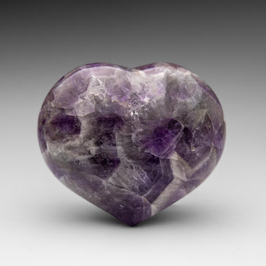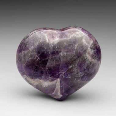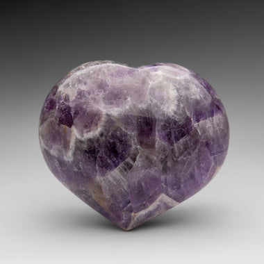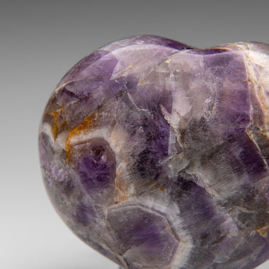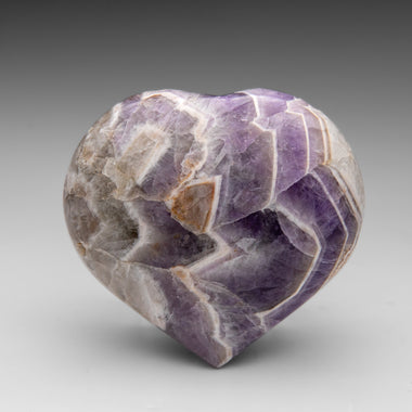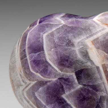 This premium polished chevron amethyst heart showcases a vibrant purple hue with translucent to transparent clarity. Chevron Amethyst features a di...