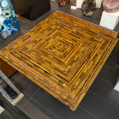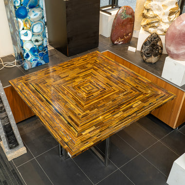 This incredible, unique, elegant and exquisite dining table. Tiger's eye has been meticulously cut into small pieces, then pieced together to creat...