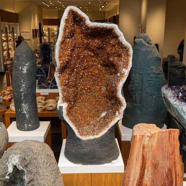 This Massive museum quality, Citrine crystal clustered geode from Brazil is a top quality natural formation of gem citrine. This specimen showcases...