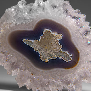 This Quartz stalactite slice from Southern Paraná Basalt Basin, Artigas, Uruguay features a beautifully banded cross section. This polished slice i...