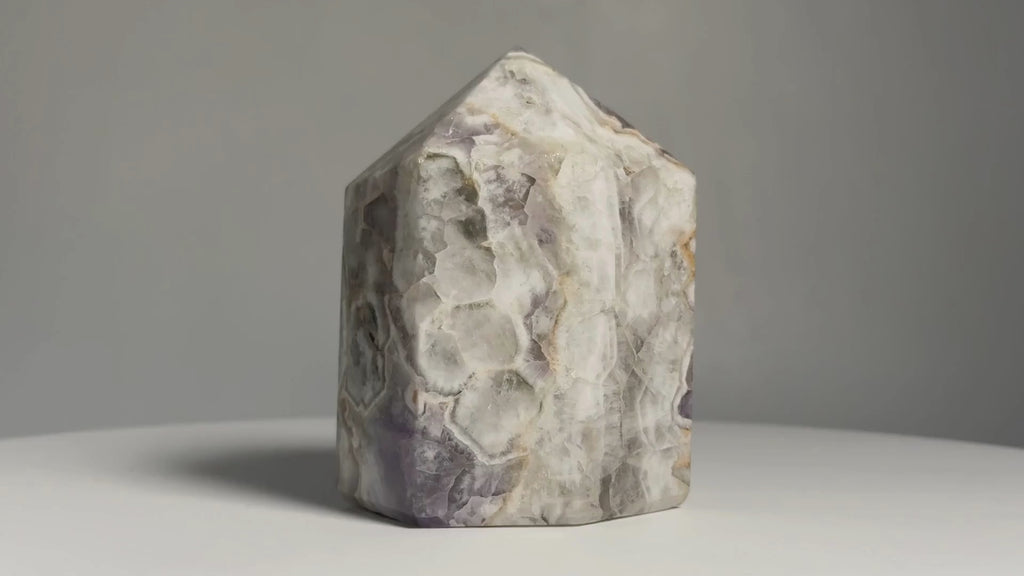 Chevron Amethyst is a combination of Amethyst and White Quartz, mixed together in a V-striped or banded pattern. Chevron Amethyst combines the strengthening and enhancing qualities of Quartz with the stress relieving qualities of Amethyst. This symbiotic combination of minerals lends itself to a wonderfully spiritual stone, which is great for gently removing the veils that obscure some of the hidden meanings in life.