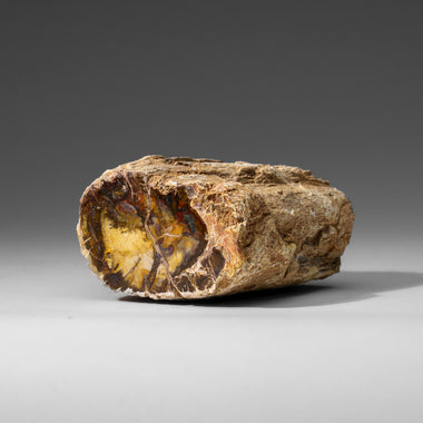This Petrified Wood Log from Madagascar features a striking pattern featuring vivid brown and white tones, with a complete fossilized tree rind. Th...