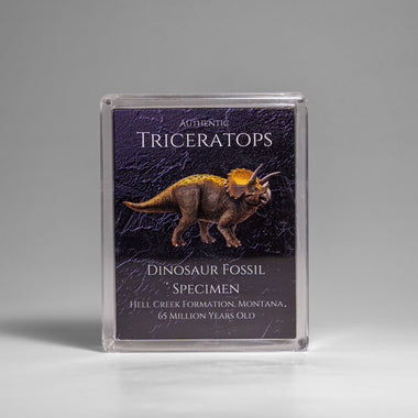 Genuine Triceratops tooth from the Hell Creek Formation in Montana. This specimen comes in a labeled display box with color image and a brief writt...