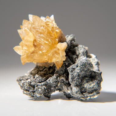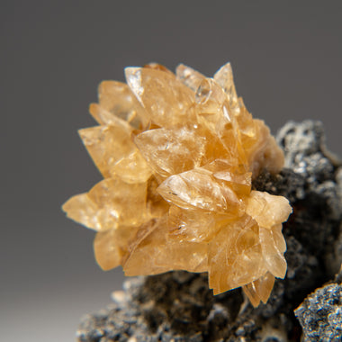 Lustrous transparent deep golden calcite crystal on sphalerite matrix. Large double terminated scalenohedral twinned on the C-axis with well define...