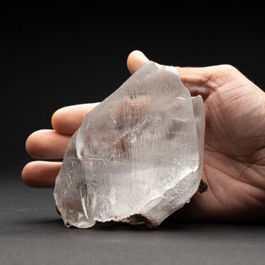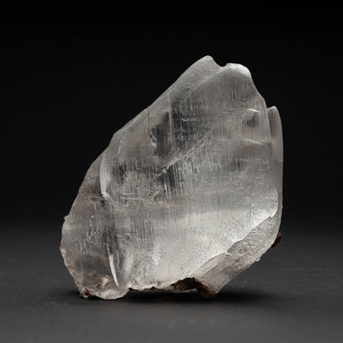 Fully terminated single crystal of transparent gem quality spodumene var. Kunzite. The crystal faces are composed of smaller lustrous parallel crys...