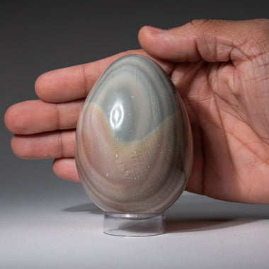 AAA-quality Polychrome Jasper egg, polished by hand, sourced from Madagascar and showcases striking multicolored patterns including circles and fig...