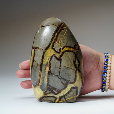This Polished Septarian free-form from Madagascar, has a great mix of yellow calcite and brown Aragonite in a very cool design. Septarian has a ve...