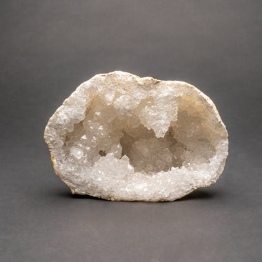 This genuine Quartz geode from Morocco showcases stunning, see-through white crystals with a sparkling appearance. The perfectly shaped, pure white...