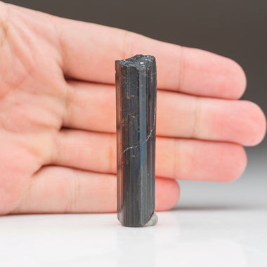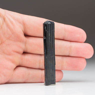 From Pederniera Mine, Sao Jose da Safira, Minas Gerais, Brazil Slender crystal of blue colored elbaite tourmaline with complex termination on one...