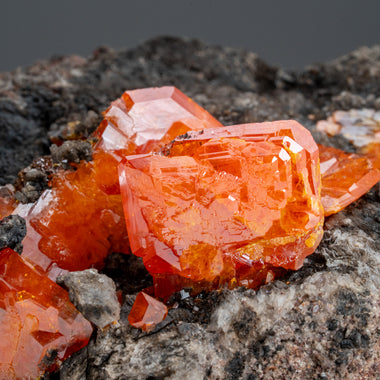 From Sierra de Los Lamentos, Chihuahua, Mexico Very sculptural large crystals of translucent orange-brown wulfenite with satin luster on the broad ...