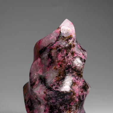Top quality, polished natural Imperial Rhodonite flame free-form from Madagascar. It has an amazing pattern with vibrant hues of pink, red and bla...