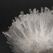 Lustrous transparent-to-translucent colorless elongated scolecite crystals in a spray-shaped formation. The scolecite crystals have glassy crystal faces and are mostly translucent to transparent at the terminations.