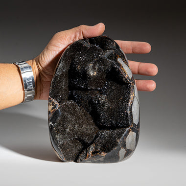 This 14.5 lb AAA quality Large Septarian Druzy Geode Egg from Madagascar features an exposed area lined with dazzling druzy quartz crystals, as we...