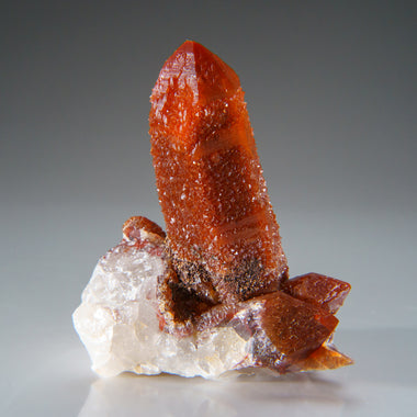 Top-quality, aesthetic cluster of lustrous translucent tangerine quartz crystals obelisk from Brazil. This perfectly terminated specimen has top qu...