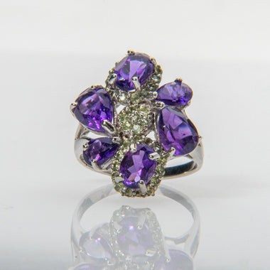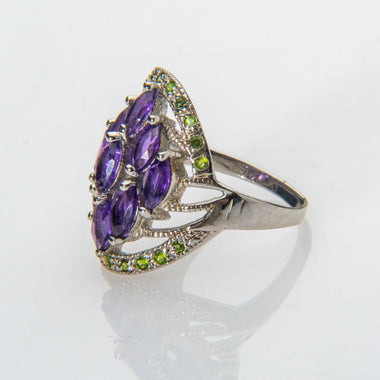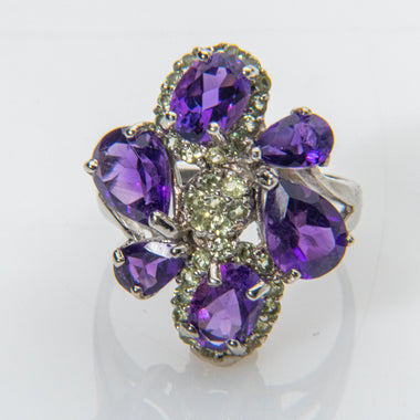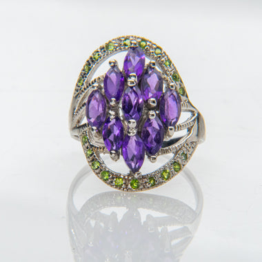 Amethyst with Peridot Gemstone Sterling Silver Ring (Size 7.5)